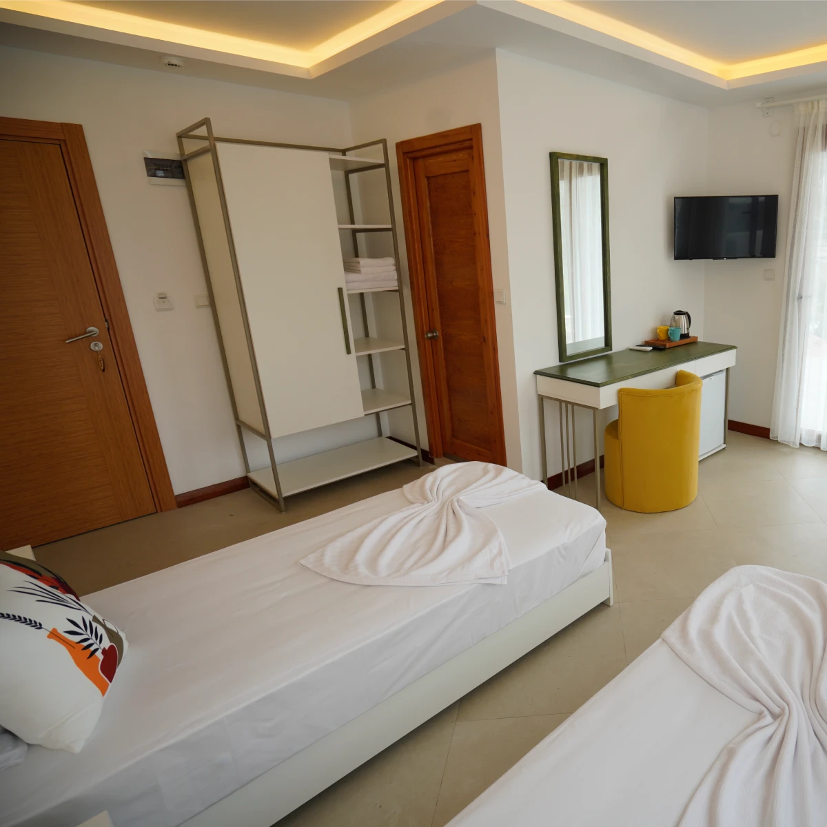 Mons Casa’nın Thyme Odası, doğayla baş başa olmak isteyenler için hazırlanmış özel bir kaçamak. Balkonundan sabahın ilk ışıklarını izleyip doğanın sessiz melodisine uyum sağlarken, mis gibi sakız ve zeytin ağaçlarının kokusu ruhunuza iyi gelecek. Doğa manzarası sizi her açıdan sararken, Thyme’da konfor da ihmal edilmemiş: televizyon keyfi, isteğe göre ayarlanabilen klima, her an elinizin altında sıcak su ve kişisel bakım ürünleri ile konaklamanız hem rahat hem de tamamlanmış hissi uyandıracak. Güvenli kasa sayesinde değerli eşyalarınız güvende. Öğle güneşiyle ısınmış balkonda kitap okumak ya da akşam serinliğinde balkonda bir şeyler içmek… Thyme’da zaman akıp giderken, her anı huzurla dolu olacak. Thyme Odası, yalnızca bir oda değil; doğanın içindeyken rahatlamak, şehirden uzaklaşmış olmak ve gerçek bir dinginlik yakalamak isteyenler için davetiyedir. Mons Casa’da, Thyme ile konaklamanız anılarda tatlı bir iz bırakacak.